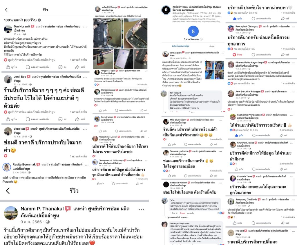 ลูกค้าทางเฟสบุ๊คแนะนำ 100% จำนวนรีวิว 80+